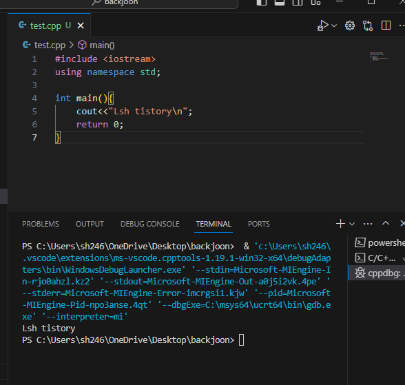 저는 폴더명이 "백준", 한글이어서 제대로 작동이 안되더라구요.