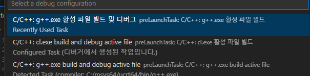 C++(GDB/LLDB) -> g++.exe 순서대로 선택하시면 됩니다.