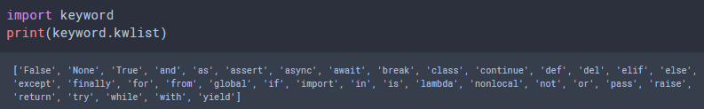 3. 예약어를 사용할 수 없다. ( 예약어 : 파이썬에서 이미 사용되고 있는 단어 )