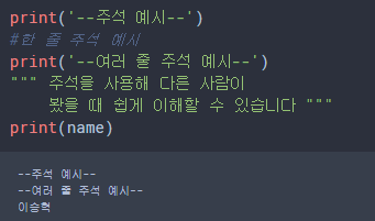 프로그램에서 주석부분은 인터프리터에 의해 무시되는 텍스트의 한 부분입니다.