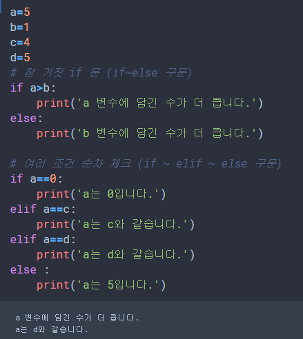# 여러 조건 순차 체크 (if ~ elif ~ else 구문)