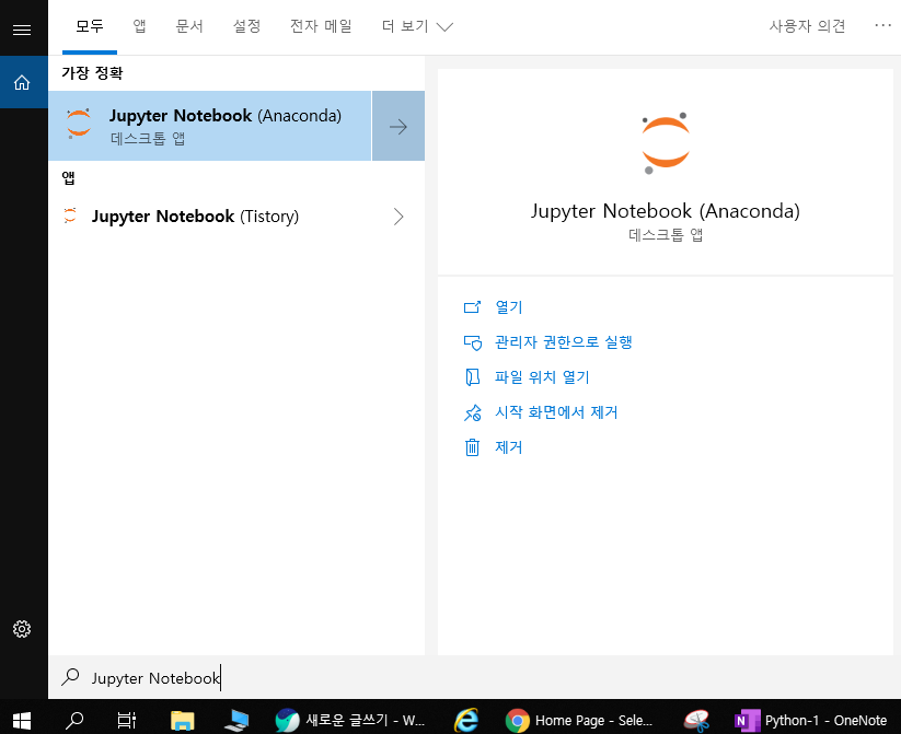 2. 시작메뉴 -> Jupyter Notebook(Tistory)