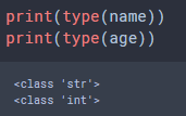 실습 2. 위에서 생성한 name,age 변수의 자료형을 확인(type)해보기