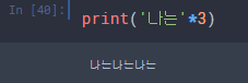 ※ 문자를 여러개 출력할 때는 문자 * 숫자 형태로 표현할 수 있습니다.