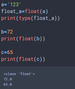 위의 경우와 마찬가지로 정수형 자료를 실수형 자료로 변경하는 내장함수입니다.