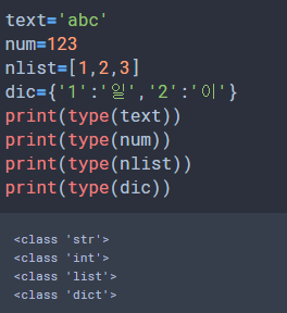즉, 숫자형, 문자, 문자열, 리스트, 튜플, 사전, 등은 하나의 클래스로 취급됩니다.